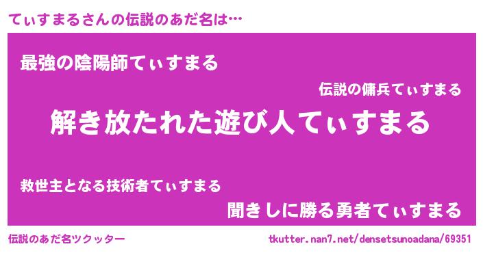 | 男性向けラノベタイトル風あだ名 | 『ダンジョンにてぃすまるを求めるのは間違っているだろうか』 |