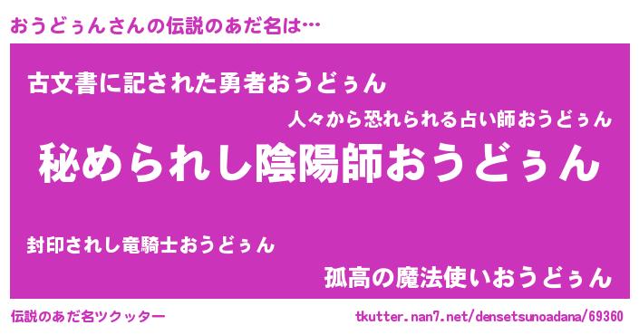 | 意味不明あだ名 | 『自称おうどぅん』『永久保存おうどぅん』 |