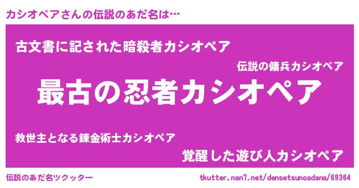 | 男性向けラノベタイトル風あだ名 | 『Re:カシオペアから始める異世界生活』 |