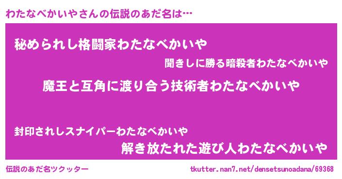 | 意味不明あだ名 | 『自称わたなべかいや』 |