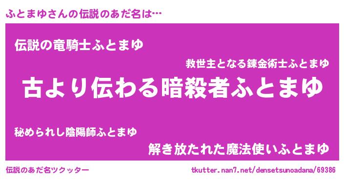 | ヒーロー風カッコイイあだ名 | 『ネオフトマユ』『仮面フトダー』 |