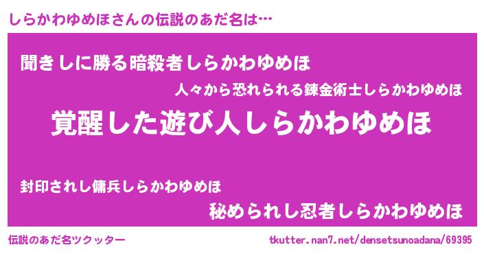 | ヘコむあだ名 | 『しらぷりん』『しらかわゆめほ(笑)』 |