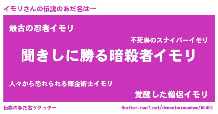 | ファンタジー風あだ名 | 『イモディッシュ』『エターナルイモリー』 |