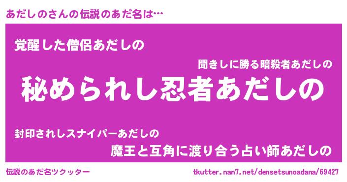 | ヒーロー風カッコイイあだ名 | 『仮面アダダー』『ウルトラあだしのマン』 |