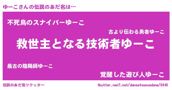 | ヒーロー風カッコイイあだ名 | 『天空の使者ゆーこ』『スーパーユーコ』 |