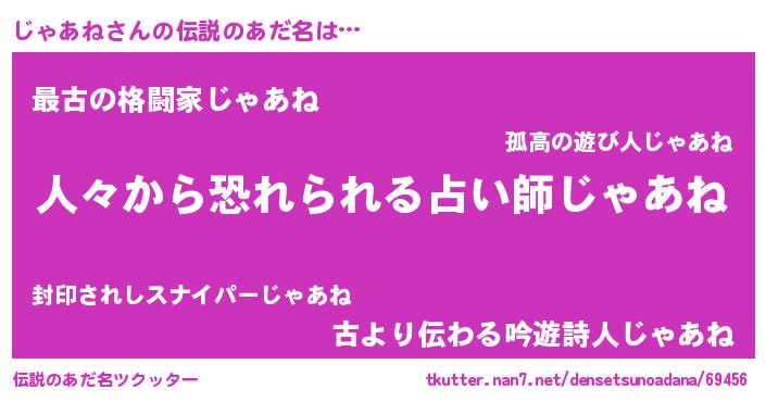 | 男性向けラノベタイトル風あだ名 | 『おまえをオタクにしてやるから、俺をじゃあねにしてくれ! 』 |