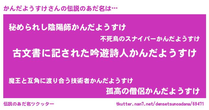 | 胡散臭い通販商品みたいなあだ名 | 『あなたにだけ特別に提供する100年もののヴィンテージワイン…その名も「かんだようすけ」』 |