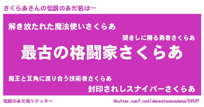 | 意味不明あだ名 | 『さくらあフォーエバー』『自称さくらあ』 |