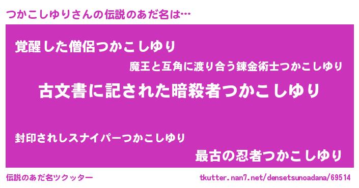 | ヒーロー風カッコイイあだ名 | 『ネオツカコシユリ』『天弓騎士ツカ』 |