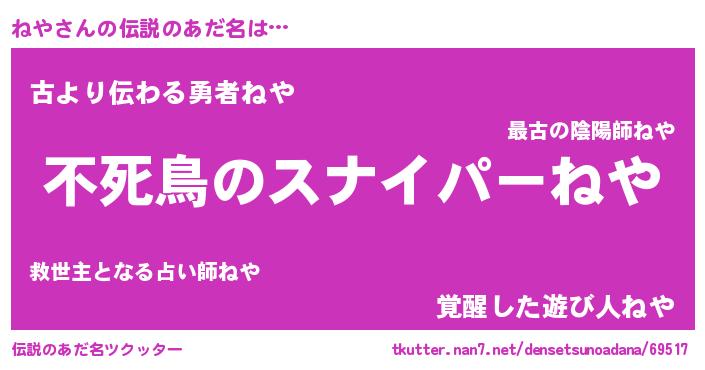 | ヘコむあだ名 | 『ねやもー』『ねや(苦笑)』 |