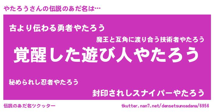 | 男性向けラノベタイトル風あだ名 | 『やたろうに滅ぼされるだけの簡単なお仕事です』 |