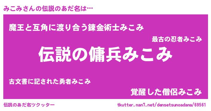 | ヒーロー風カッコイイあだ名 | 『スーパーミコミ』『仮面ミコダー』 |
