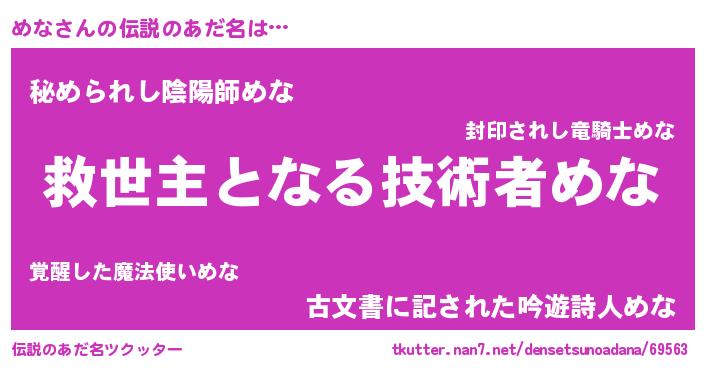 | ヒーロー風カッコイイあだ名 | 『天空の使者めな』『超時空戦士メナ』 |