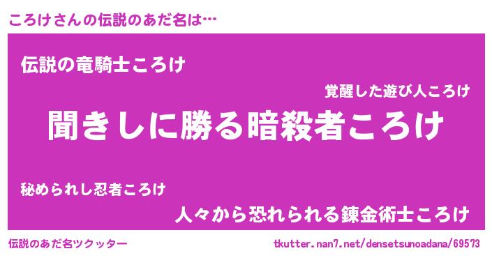 | 男性向けラノベタイトル風あだ名 | 『ころけという概念が存在しない退屈な世界 』 |
