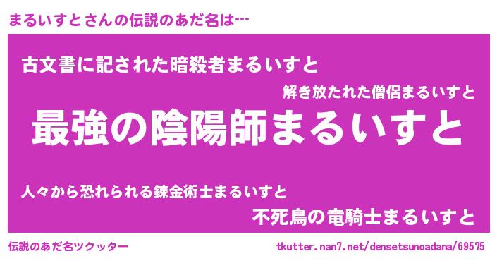 | 男性向けラノベタイトル風あだ名 | 『まるいすと~年齢イコール彼女いない歴の魔法使い~』 |