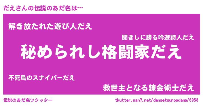 | ヒーロー風カッコイイあだ名 | 『ウルトラだえマン』『黄金騎士ダエ』 |