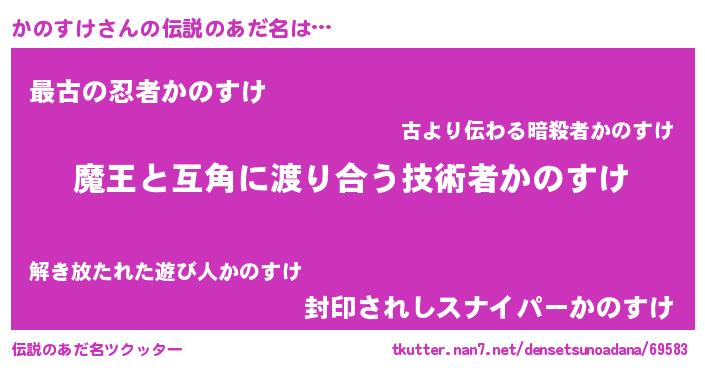 | 男性向けラノベタイトル風あだ名 | 『かのすけに滅ぼされるだけの簡単なお仕事です』 |
