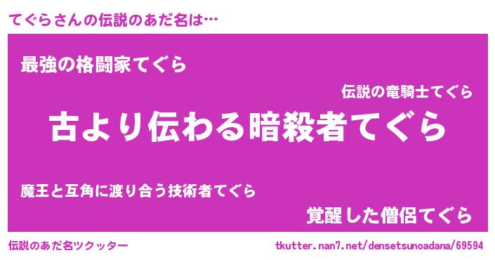 | 意味不明あだ名 | 『永久保存てぐら』『てぐらフォーエバー』 |