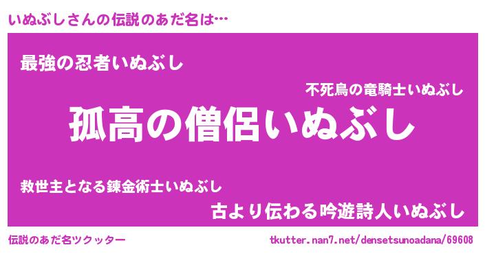 | 女子向けラノベタイトル風あだ名 | 『いぬぶしが死なない童話 林檎のいぬぶしの診療簿』 |