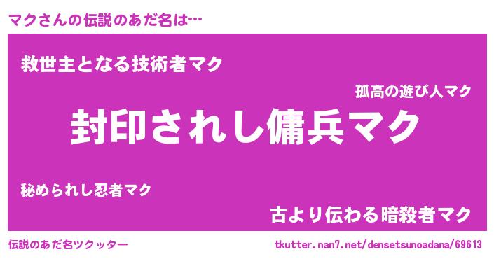 | ヒーロー風カッコイイあだ名 | 『スーパーマク』『慈愛の使者マク』 |