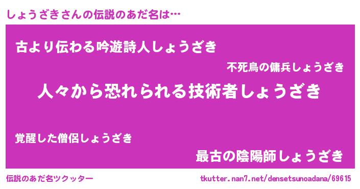 | ヒーロー風カッコイイあだ名 | 『正義の使者しょうざき』『仮面ショダー』 |