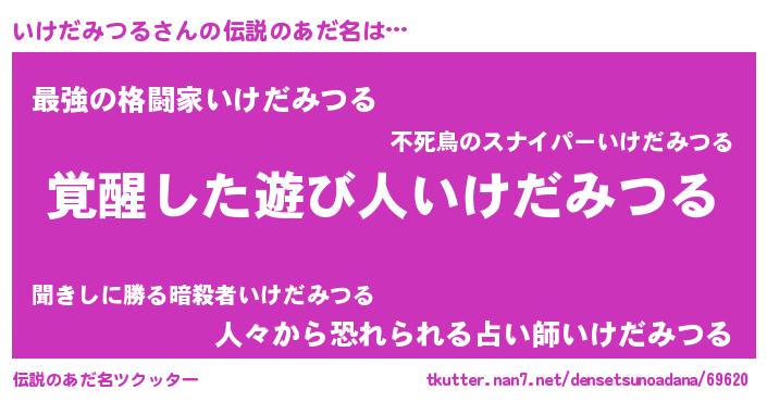 | 男性向けラノベタイトル風あだ名 | 『いけだみつるに滅ぼされるだけの簡単なお仕事です』 |