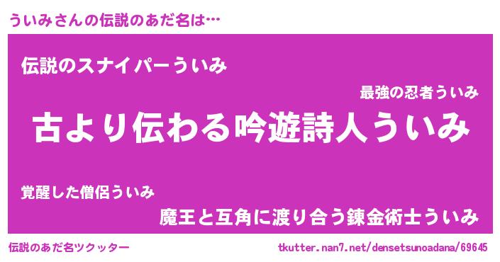 | 意味不明あだ名 | 『永久保存ういみ』『たけのこ科ういみ属』 |