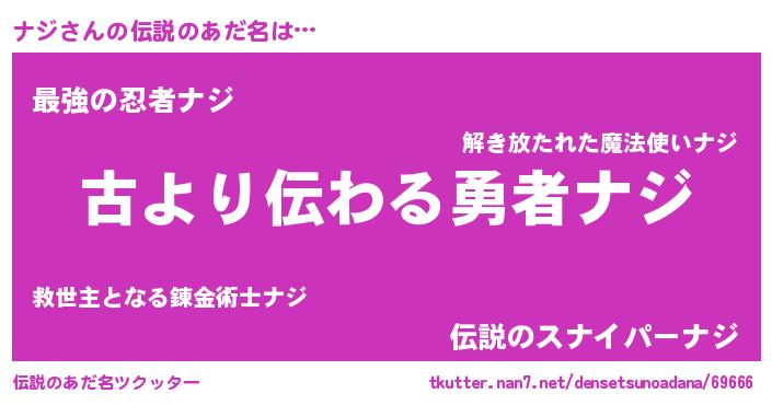 | 男性向けラノベタイトル風あだ名 | 『ナジという概念が存在しない退屈な世界 』 |