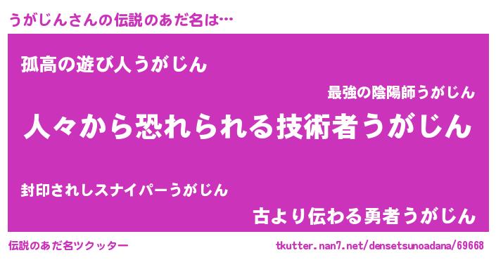 | 男性向けラノベタイトル風あだ名 | 『緋弾のウガジン』 |