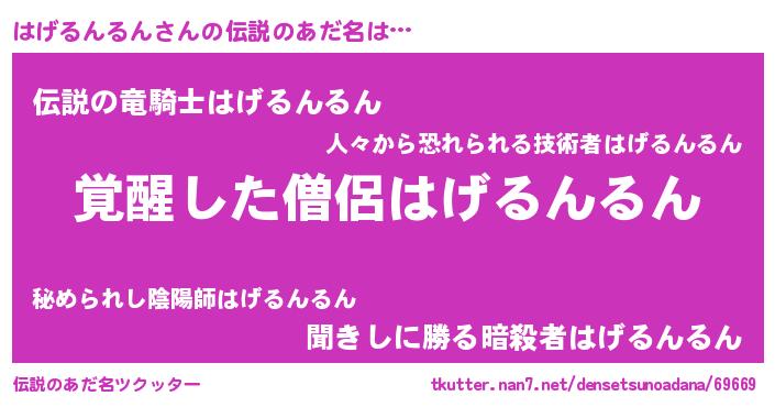 | 男性向けラノベタイトル風あだ名 | 『はげるんるんの嫁は女の子じゃないと思った?』 |