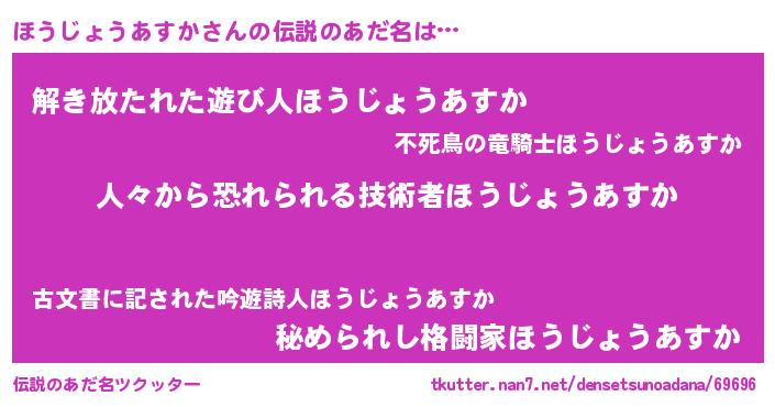 | ヒーロー風カッコイイあだ名 | 『正義の使者ほうじょうあすか』 |
