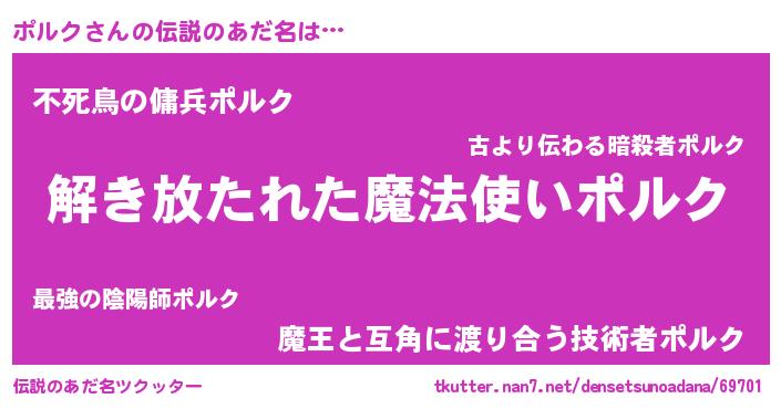 | ヒーロー風カッコイイあだ名 | 『魔戒騎士ポル』『スーパーポルク』 |