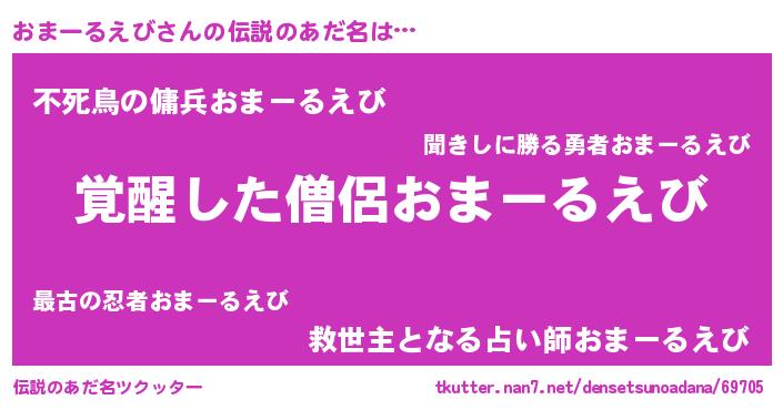 | 男性向けラノベタイトル風あだ名 | 『おまーるえびの嫁は女の子じゃないと思った?』 |