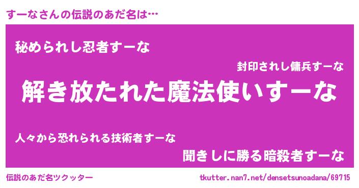 | 意味不明あだ名 | 『とにかく怪しいすーな』 |
