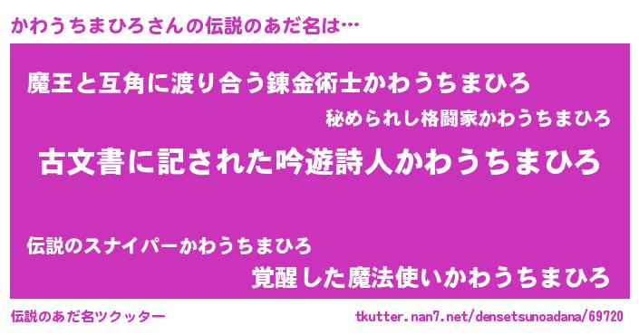 | 意味不明あだ名 | 『自称かわうちまひろ』 |