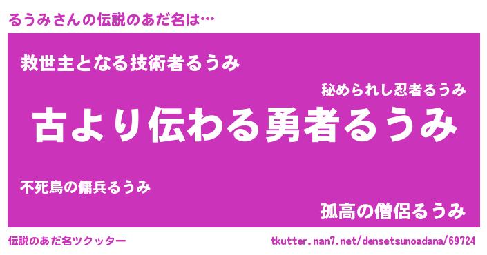 | 男性向けラノベタイトル風あだ名 | 『Re:るうみから始める異世界生活』 |