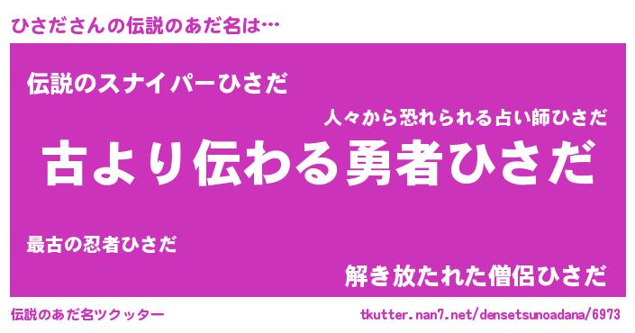 | 男性向けラノベタイトル風あだ名 | 『ひさだという概念が存在しない退屈な世界 』 |