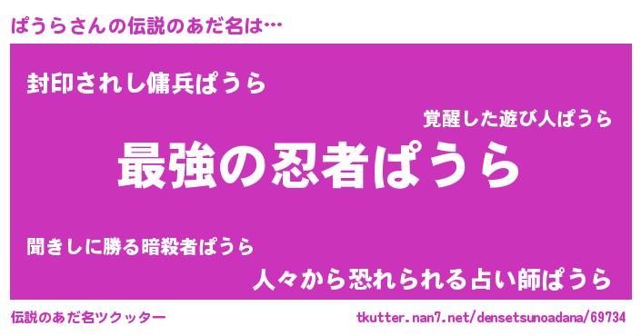 | 男性向けラノベタイトル風あだ名 | 『ぱうら~年齢イコール彼女いない歴の魔法使い~』 |