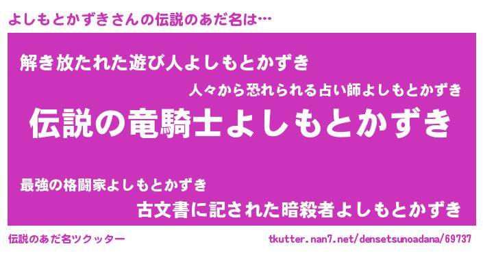 | 男性向けラノベタイトル風あだ名 | 『よしもとかずきの憂鬱』 |