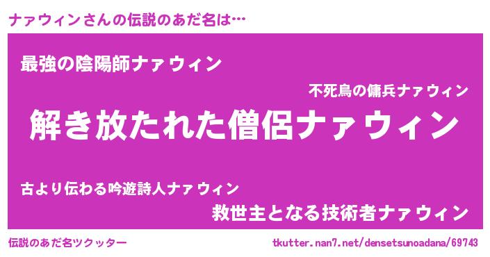 | ヒーロー風カッコイイあだ名 | 『銀牙騎士ナァ』『天空の使者ナァウィン』 |