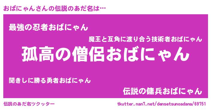 | 意味不明あだ名 | 『住所不定無職おばにゃん(41歳)』 |