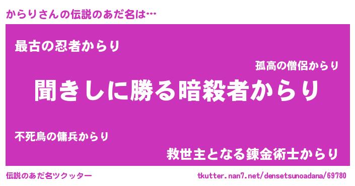 | ヒーロー風カッコイイあだ名 | 『ネオカラリ』『仮面カラダー』 |