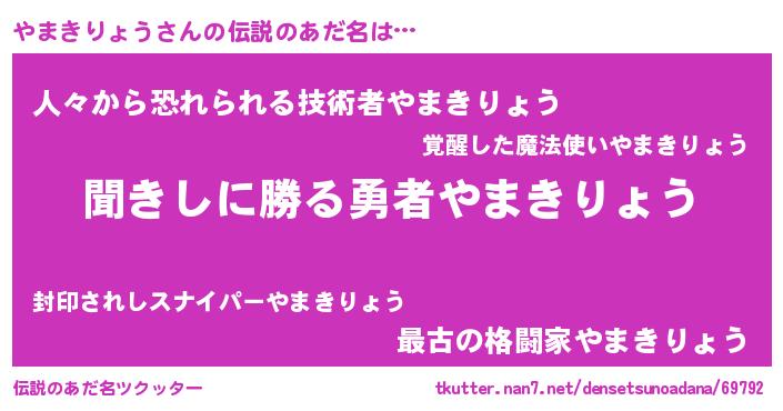 | ヘコむあだ名 | 『やまきりょう(震え声)』『牛乳』 |