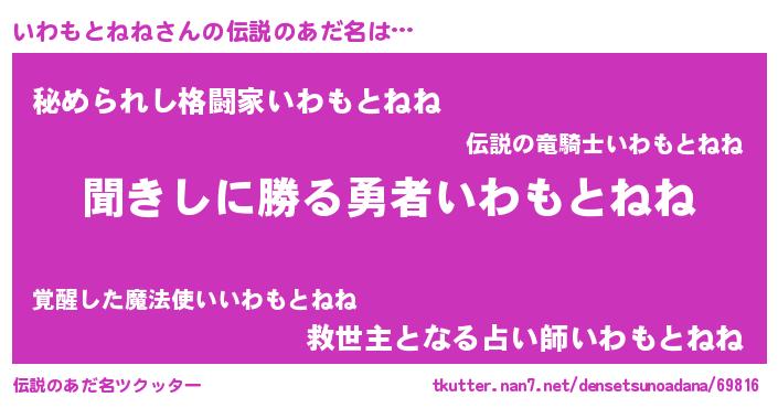 | 男性向けラノベタイトル風あだ名 | 『イワモトネネスレイヤー』 |