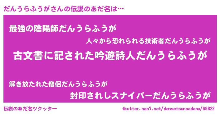 | 肩書あだ名 | 『だんうらふうが大佐』 |