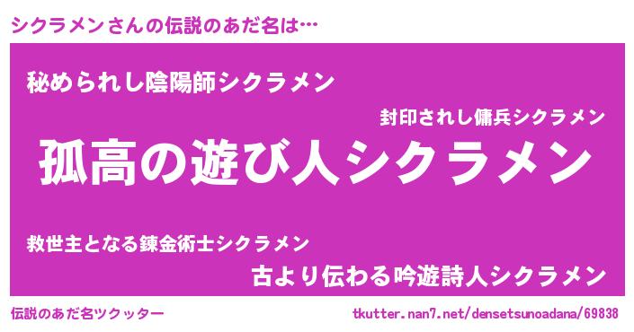 | ヒーロー風カッコイイあだ名 | 『黄金騎士シク』『ネオシクラメン』 |