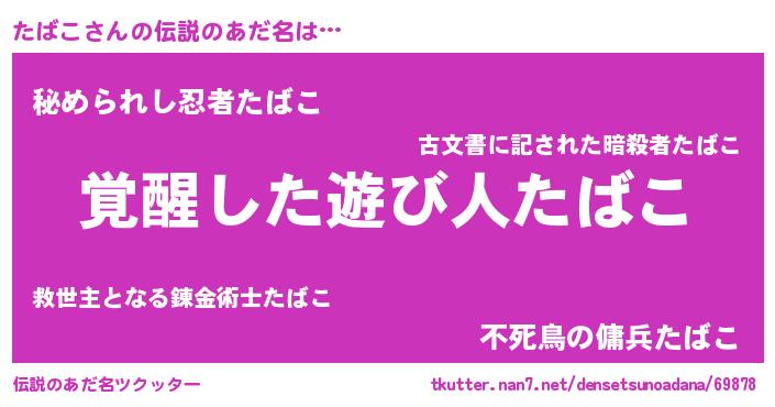 | ヒーロー風カッコイイあだ名 | 『仮面タバダー』『暗黒騎士タバ』 |