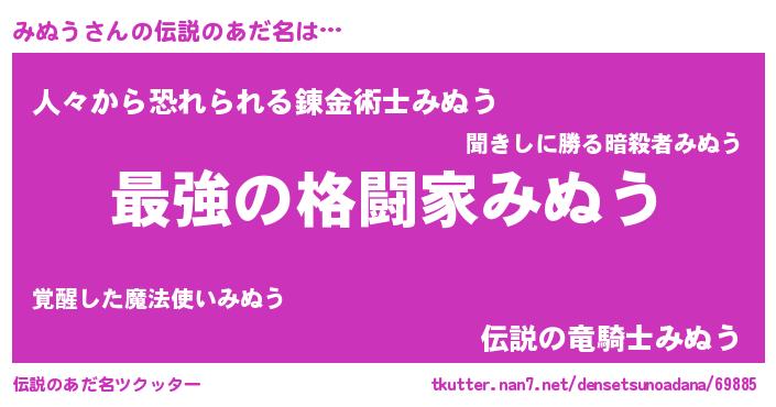 | ヒーロー風カッコイイあだ名 | 『ウルトラみぬうマン』『スーパーミヌウ』 |