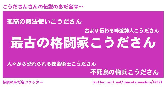 | 恥ずかしいあだ名 | 『コウダサンデラックス』『こうっちょ』 |