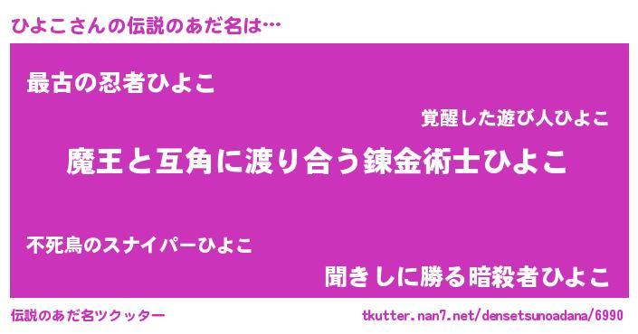 | ヒーロー風カッコイイあだ名 | 『仮面ヒヨダー』『友情の使者ひよこ』 |